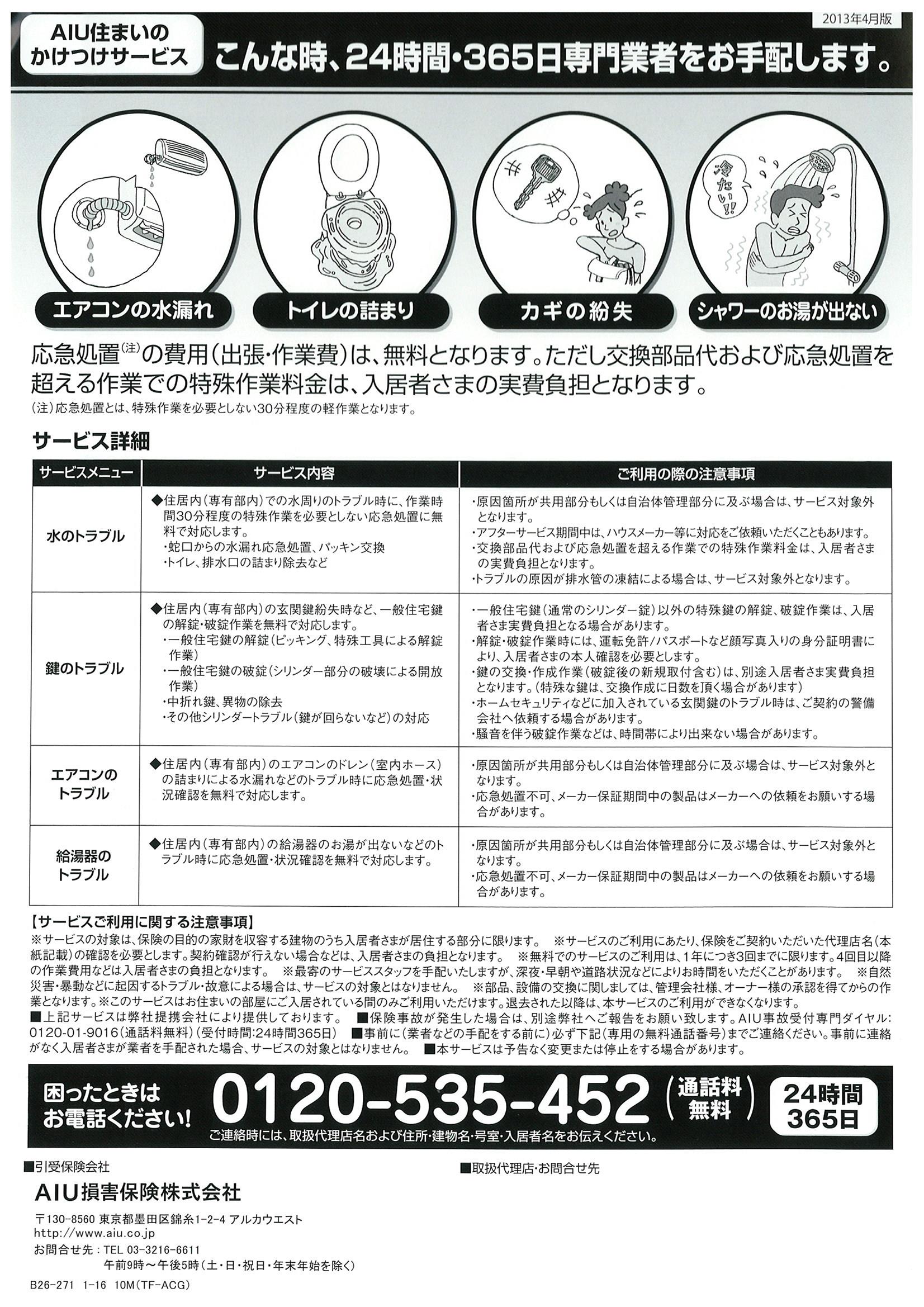 当社指定の火災保険(AIUリビングサポート保険)ご加入にご加入頂いている方は