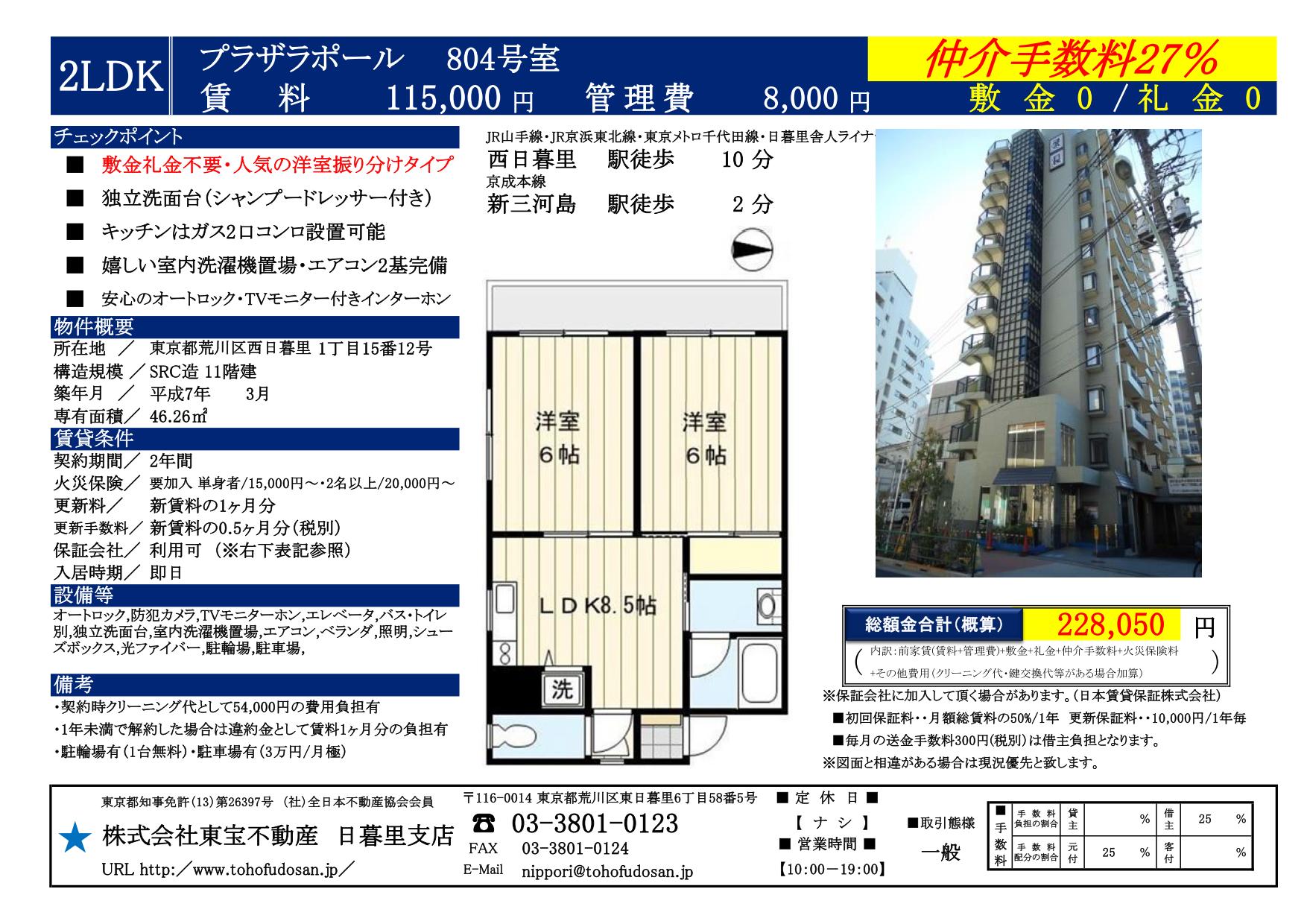 プラザラポール804号室(仲介手数料27%対象物件)